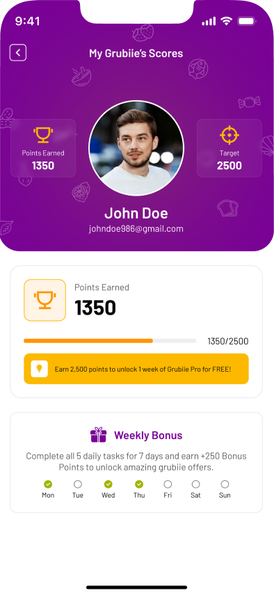 Earn points every time you log meals, explore new recipes, or reduce food waste—making healthy habits rewarding.
